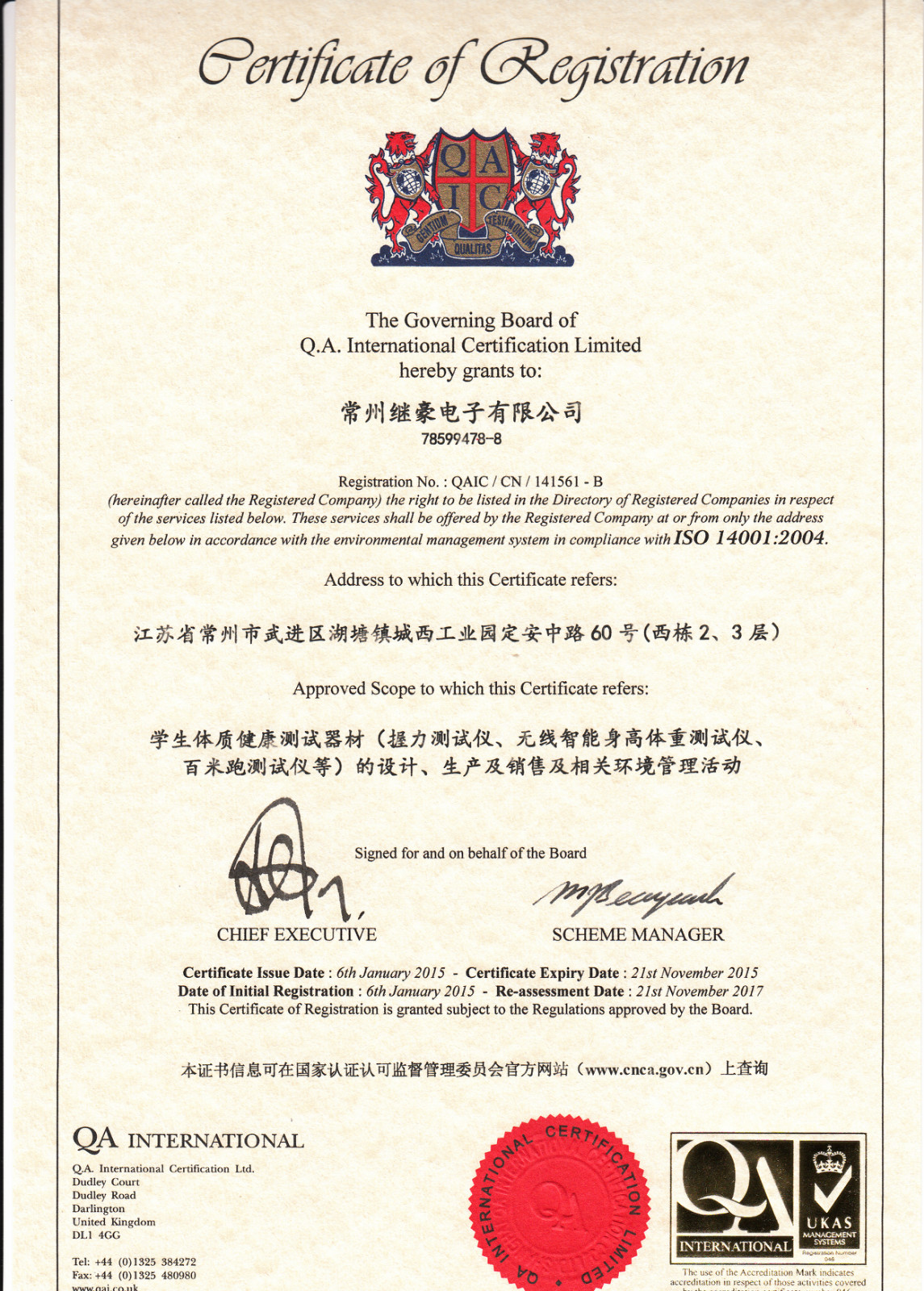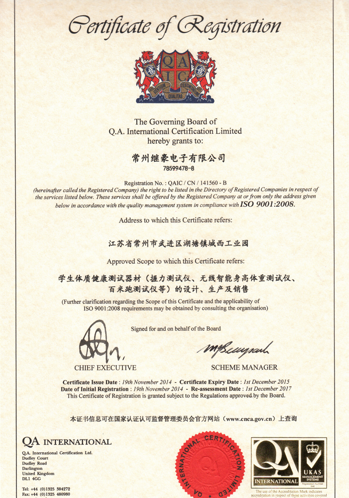 质量认证-英文版 质量认证-中文版
